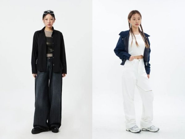 Quần ống rộng tạo nên bộ trang phục cá tính (Nguồn: kooding.com & lewkin.com) MUA NGAYÁo khoác và quần jean ống suông