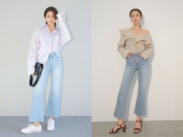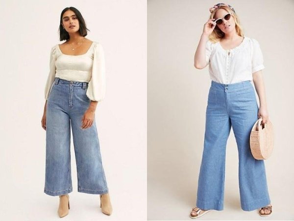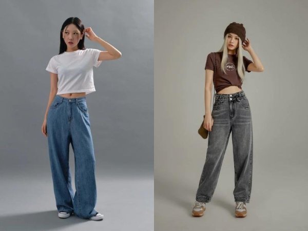 Cách phối đồ cho người thấp với quần jeans ống rộng (Nguồn: lewkin.com) MUA NGAYCách phối đồ cho người gầy và lùn với áo babydoll