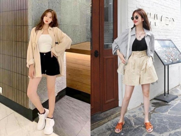 Quần short cạp cao giúp bạn tôn dáng tốt hơn (Nguồn: lewkin.com) MUA NGAYCách phối đồ cho nữ 1m55 với chân váy chữ A