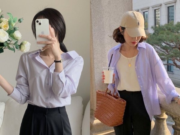 Áo tím pastel phù hợp để phối nhiều phong cách khác nhau (Nguồn: Chuu) MUA NGAYBên cạnh đó, màu tím pastel cũng rất phù hợp khi được phối cùng chân váy be. Với cách phối này, bộ trang phục của bạn sẽ trở nên mạnh mẽ, cá tính và cuốn hút trông thấy. Về phụ kiện, một chiếc túi đồng nhất tông màu cùng váy hoặc một chiếc kính sẽ là những mảnh ghép phù hợp để hoàn thiện bộ trang phục.