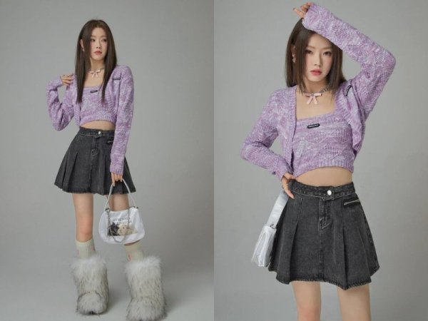 Chân váy xám tiêu phối cùng quần áo tím giúp bạn có một trang phục đậm chất Hàn Quốc (Nguồn: Chuu) MUA NGAYĐối với tất cùng sneaker, bạn có thể tùy biến lựa chọn hai tông màu xám – trắng. Cả hai đều mang lại hiệu ứng đồng nhất màu sắc trang phục hiệu quả. Về phụ kiện, một chiếc túi kẹp nách màu trắng, có hiệu ứng bóng sẽ giúp trang phục của bạn thêm phần thời thượng.
