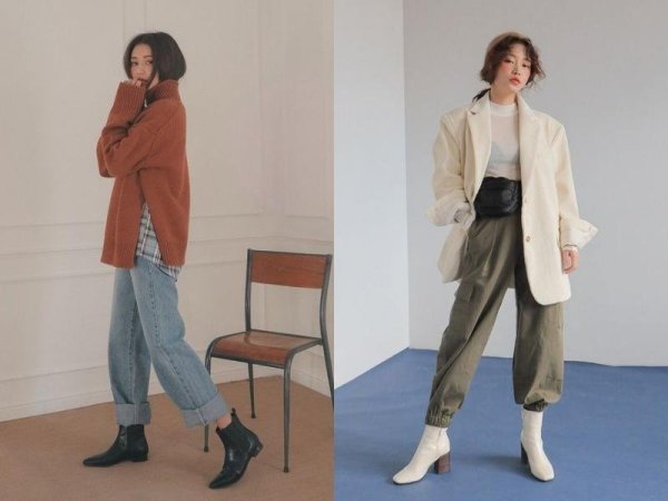 Khi diện quần jeans cùng giày boot đế bệt, bạn sẽ toát lên nét nữ tính nhưng vẫn giữ được sự cá tính (Nguồn: yesstyle.com và Linz/pinterest.com)> Xem thêm: Cách phối đồ với boot cổ ngắn đế bệt cực sành điệu, cá tính