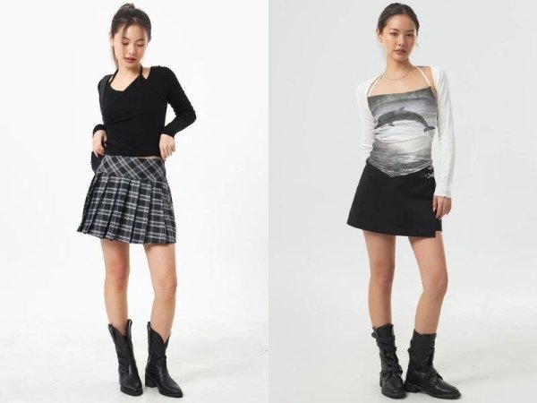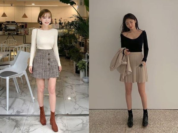 Chân váy chữ A dáng ngắn giúp bạn khoe trọn đôi chân của mình (Nguồn: en.chuu.co.kr và Nhi/pinterest.com) MUA NGAYBạn có thể kết hợp cùng áo croptop nếu theo đuổi phong cách thời trang cá tính. Ngược lại, nếu bạn là cô nàng nữ tính, dịu dàng, bạn nên phối set đồ cùng áo len hoặc áo thun. Ngoài ra, bạn cũng mix với áo len hoặc áo thun tay dài vào những ngày thời tiết se lạnh.