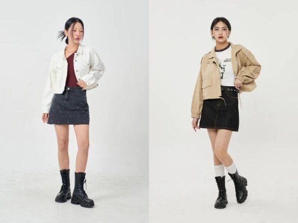 Phối đồ với giày boot buộc dây và chân váy ngắn sẽ giúp bạn tôn lên vẻ đẹp của cơ thể, tạo cảm giác trẻ trung, năng động. Bạn có thể chọn các mẫu giày đế bằng hoặc cao gót để outfit ấn tượng hơn.