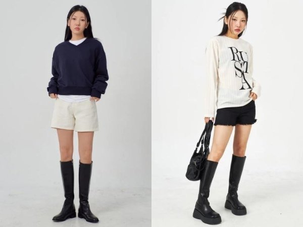 Cách phối đồ với giày boot cổ cao cùng quần short sẽ có phần phá cách và cá tính nên rất phù hợp với những bạn gái trẻ trung, năng động. Vào mùa đông, bạn nên chọn các loại áo tay dài, áo len hoặc áo sweater để phối cùng 2 item này. Thêm một số phụ kiện như mũ nồi, túi đeo chéo hoặc khăn choàng sẽ giúp set đồ ấn tượng hơn.