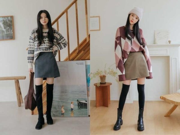 Chân váy ngắn là item thích hợp để phối với giày boot vào mùa đông (Nguồn: lewkin.com)> Xem thêm: Gợi ý cách phối đồ với chelsea boots nữ cá tính, chuẩn Fashion