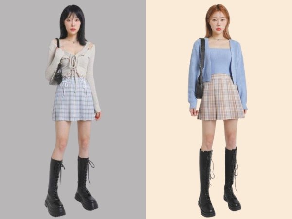 Boot chiến binh giúp bạn có outfit cool ngầu hơn (Nguồn: lewkin.com) MUA NGAYPhối đồ với chân váy tennis caro