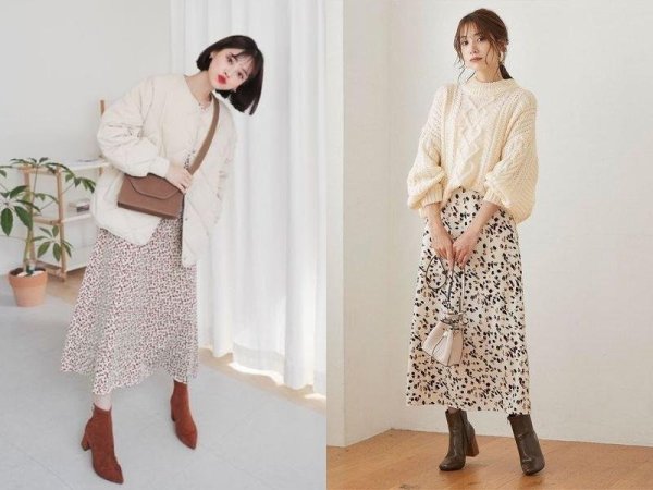 Chân váy midi cũng đều dễ dàng để tạo nên một outfit tổng thể đầy cá tính (Nguồn: Mint.Tang/pinterest.com) MUA NGAY Chân váy dài hoa nhí cũng phù hợp khi phối cùng boot cổ thấp (Nguồn: folk-media.com) MUA NGAYMix đồ với áo len oversize