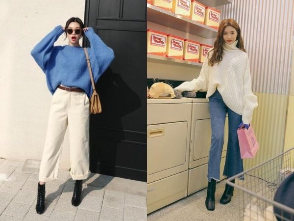 Nếu bạn muốn theo đuổi phong cách dịu dàng, đầy nữ tính nhưng vẫn thời trang thì nên kết hợp boot cổ thấp và áo len oversize. Bạn có thể chọn phối với chân váy hoặc quần jeans đều giúp set đồ trở nên năng động và phong cách hơn.