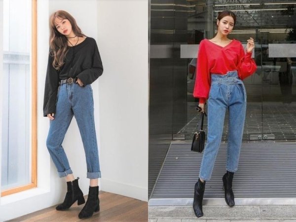 Lên đồ với quần jeans cạp cao và boot cổ thấp