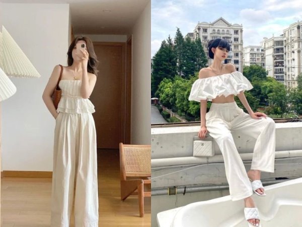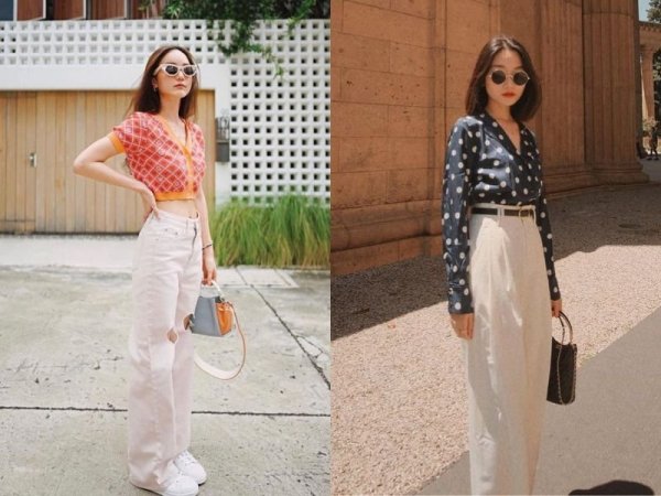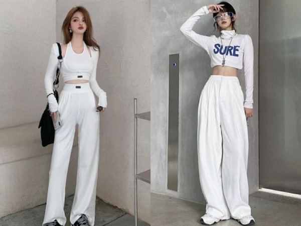 Nếu bạn yêu thích sự tươi sáng và hiện đại thì combo quần ống rộng trắng mix cùng áo croptop là sự lựa chọn tuyệt vời cho bạn. Quần ống suông, ống rộng trắng giúp người mặc cân bằng vóc dáng, tạo cảm giác đôi chân thon dài và giúp ăn gian chiều cao ấn tượng. Bạn có thể chọn croptop có màu tương phản nhằm làm outfit thêm nổi bật giữa đám đông. Đây là được xem là câu trả lời hoàn hảo cho chủ đề quần trắng phối với áo gì.