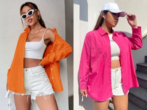 Tự tin diện quần short trắng cá tính (Nguồn: SHEIN – Pinterest)Áo sơ mi trơn phối cùng quần trắng