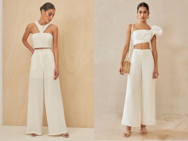 Khi phối đồ với quần trắng ống rộng, nàng nên lựa chọn trang phục phần trên có thiết kế kiểu cách hoặc có gam màu nổi bật nhằm cân đối outfit. Áo kiểu với họa tiết hoa hoặc với các đường cắt xẻ, áo croptop sẽ là lựa chọn tuyệt vời khi phối cùng quần trắng ống rộng. Đây là cũng sự kết hợp phổ biến của thời trang công sở vào những ngày nắng nóng.