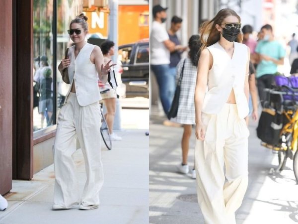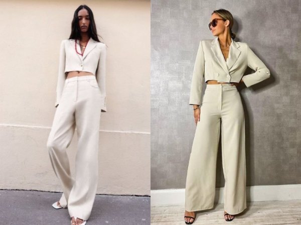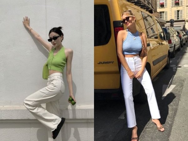 Mix quần ống rộng trắng sang, xịn, mịn (Nguồn: Vogabox, CULT GAIA – Pinterest)Quần tây trắng và áo vest croptop