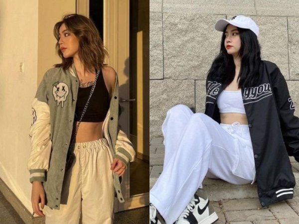 Chất chơi, hợp mốt khi diện cùng quần túi hộp trắng (Nguồn: ark, aorth_viee – Pinterest) MUA NGAYQuần ống thun mix với áo khoác bomber