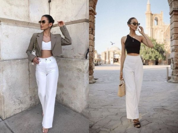Combo quần trắng kết hợp cùng áo croptop năng động là sự lựa chọn hoàn hảo cho các quý cô hiện đại, thích khám phá bản thân. Nàng hãy ưu tiên chọn quần trắng có kiểu dáng suông, cạp cao, ống rộng để cân đối dáng người. Hoặc có thể phối áo croptop với quần skinny trắng co giãn, giúp đem lại cảm giác thoải mái khi mặc.
