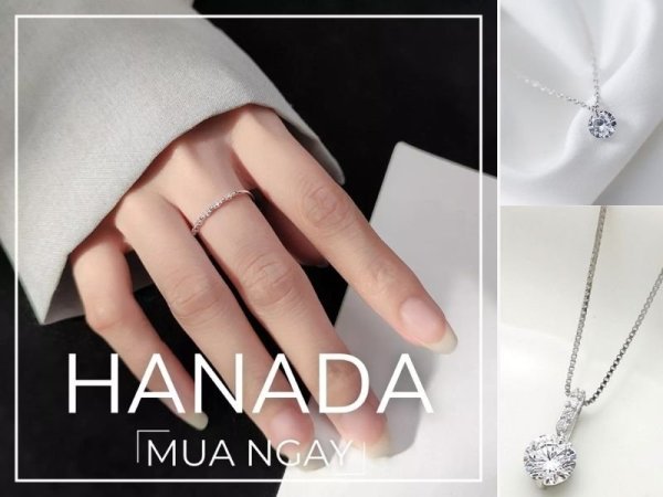 Hanada Jewelry là shop phụ kiện trang sức giá rẻ, chú trọng vào các sản phẩm có kích thước nhỏ nhắn, trang trí đơn giản. Hoa tai thường có bán kính từ 3mm – 6mm, dây chuyển có độ dài khoảng 45cm, các mặt trang trí cũng có kích thước dao động trong khoảng 1.3cm x 0.6cm.