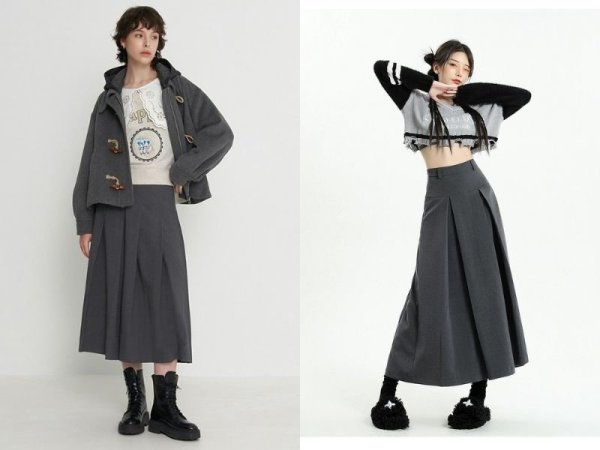 Sự kết hợp giữa hai tông màu xám cũng là một sự lựa chọn tuyệt vời giúp bạn có phong cách tinh tế. Bạn có thể lựa chọn một chân váy dài màu xám lông chuột để phối cùng với áo cùng màu như áo thun, áo croptop hoặc áo khoác. Cách phối đồ này vừa mang nét bí ẩn cùng sự thanh lịch giúp bạn trông nổi bật hơn.