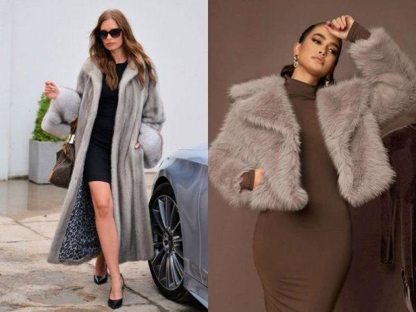 Một chiếc đầm body kết hợp cùng với áo khoác lông xám nhạt sẽ khiến bạn trông quyến rũ và sang trọng hơn. Nếu bạn đang cần tìm một outfit sang trọng cho những bữa tiệc tối hoặc đám cưới thì có thể tham khảo qua cách phối đồ này nhé!