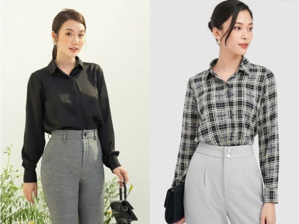 Đối với những nàng có vóc dáng thanh mảnh thì có thể lựa quần tây màu xám trắng mix với áo sơ mi sọc caro đen để trông thanh lịch và chững chạc hơn. Hoặc với những nàng hơi tròn thì có thể mix quần tây màu xám đậm với áo sơ mi đen để tổng thể trông thon gọn hơn.