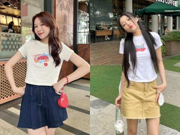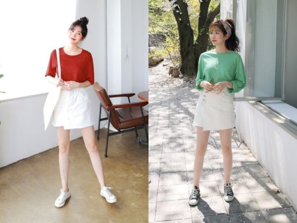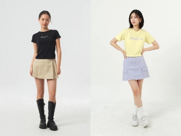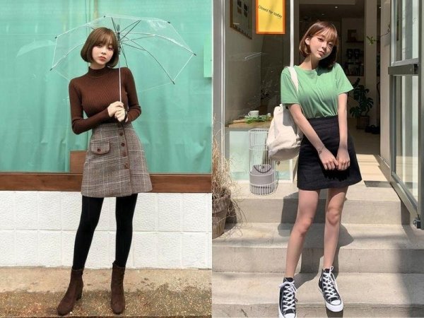 Bạn có thể phối áo babytee với nhiều loại chân váy chữ A khác nhau (Nguồn: beecost và beaudy.vn)Phối đồ ulzzang với áo thun ôm và chân váy chữ A