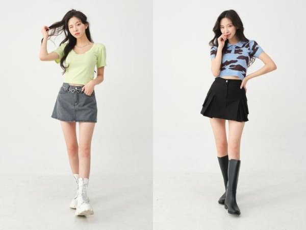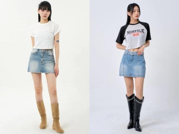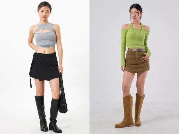 Bạn nên chọn các mẫu chân váy chữ A ngắn cạp cao để tạo cảm giác chân dài hơn. Còn nếu là cô nàng theo đuổi phong cách cool ngầu thì bạn có thể phối chân váy cạp trễ để theo style Acubi hoặc y2k xu hướng hiện nay. Đừng quên phối thêm một đôi giày sneaker hoặc giày boot cao gót để tôn dáng hơn nhé!