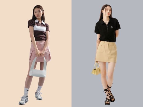 Áo polo rất dễ phối đồ và thời trang (Nguồn: lewkin.com và Musinsa) Mua NgayNếu đã nhàm chán với những chiếc áo polo ngắn tay thì bạn hãy thử xuống phố với áo polo tay dài với chân váy kaki chữ A. Đây là set đồ vừa cá tính, vừa năng động, phù hợp để bạn diện đi chơi hay hẹn hò cùng bạn bè vào những ngày se lạnh. Đừng quên tạo điểm nhấn thêm cho trang phục bằng túi xách, mắt kính hay nón nhé!
