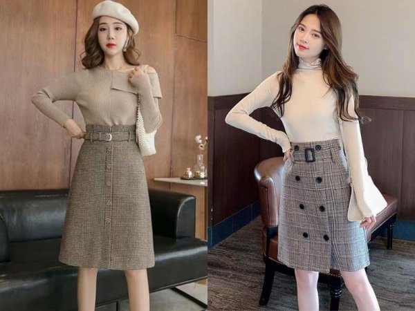 Chân váy chữ A caro phối với áo gì? Đây là item rất thích hợp để phối cùng áo len vào mùa đông (Nguồn: ngoisao.vnexpress.net và kengfashion.com) Mua NgayCách phối đồ với chân váy dạ chữ A