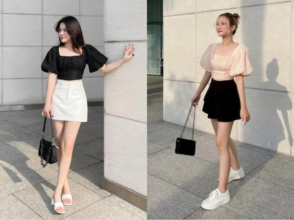 Đối với các bạn nữ theo đuổi phong cách thời trang nữ tính và thanh lịch, bạn có thể kết hợp áo tay phồng với chân váy chữ A dáng ngắn. Set đồ này vừa nữ tính vừa gợi cảm, giúp bạn cảm thấy thoải mái và thoáng mát. Đây chắc chắn sẽ là set đồ tuyệt vời cho những buổi hẹn hò của bạn. Để tôn dáng tốt hơn, bạn nên chọn phối thêm một đôi giày cao gót nữa nhé!