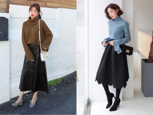 Chân váy chữ A giúp hack chân cho các nàng “nấm lùn” (Nguồn: trieuson5 – Trieu Son) Mua NgayMix đồ với áo len và chân váy dài