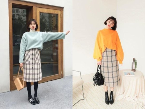 Trong những ngày thời tiết mát mẻ, một chiếc áo sweater mỏng là một sự lựa chọn thích hợp. Khi phối cùng chân váy caro, outfit này sẽ đem lại cho nàng một vẻ ngoài trẻ trung, khỏe khoắn và năng động. Bạn có thể diện bộ trang phục này check-in ở những địa điểm đẹp như các quán cà phê hay các địa điểm du lịch nổi tiếng trong những ngày tiết trời nắng nhẹ. Set đồ này sẽ giúp bạn có được những bức ảnh “sống ảo” lung linh đấy!