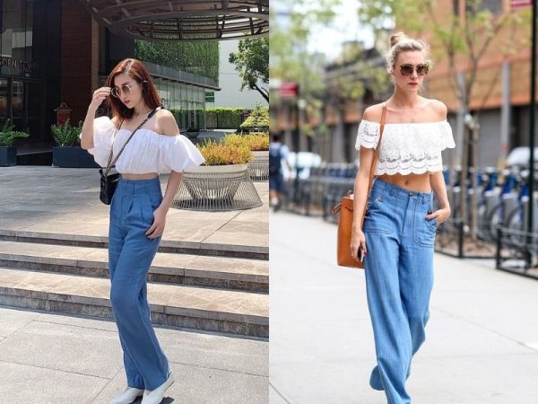 Những hôm thời tiết không quá lạnh thì outfit này sẽ là một sự lựa chọn đáng cân nhắc. Item áo trễ vai nữ tính vô cùng phù hợp khi đi du lịch Đà Lạt. Khi phối với một chiếc quần jeans ống rộng sẽ khiến bạn trông năng động hơn cũng như giúp chân bạn trông dài hơn. Set đồ này sẽ phù hợp với rất nhiều background khác nhau và khá thuận tiện cho bạn khi di chuyển.