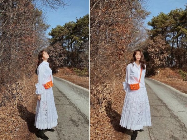 Chân váy dài xếp ly rất phù hợp với phong cách đi Đà Lạt thanh lịch (Nguồn: Hoàng Phúc và Chancos)Váy trắng tinh khôi