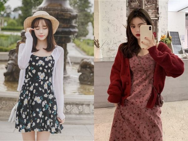 Váy họa tiết hoa nhí cho nàng thích style vintage (Nguồn: Sakurafashion.vn và BigGo) Mua NgayÁo len phối với váy yếm khi trời se lạnh