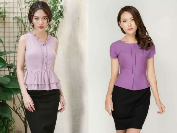 Chân váy đen phối với áo màu gì? Áo Peplum màu tím thanh lịch