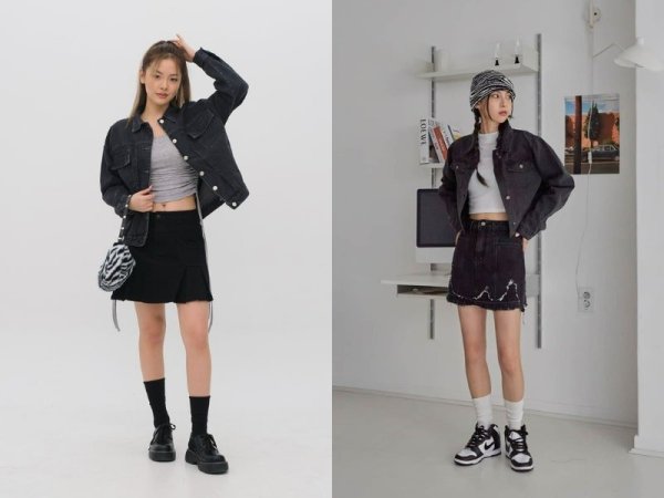 Nếu bạn muốn tạo ra phong cách đường phố bụi bặm và cá tính thì có thể lựa chọn cách phối đồ với chân váy đen ngắn và áo khoác denim. Bạn có thể lựa chọn áo khoác được làm từ chất liệu denim truyền thống có độ dày và độ cứng vừa phải mix cùng với chân váy đen ngắn cùng chất liệu sẽ giúp bạn trông cá tính và bụi bặm hơn đấy! Ngoài ra, bạn cũng có thể lựa chọn các màu sắc trung tính cho áo khoác như đen, xám, trắng hoặc nude để trông thanh lịch và thăng hạng cho bộ trang phục hơn.