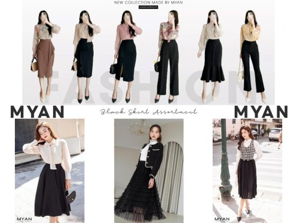 Nếu bạn yêu thích phong cách phối đồ nhẹ nhàng và thanh lịch của các cô nàng Hàn Quốc thì MYAN sẽ là lựa chọn tuyệt vời dành cho bạn. Với các mẫu chân váy đen đa dạng và phù hợp với xu hướng thời trang như chân váy dài xẻ tà, chân váy xếp ly, chân váy chữ A ngắn, chân váy đuôi cá,… chắc chắn sẽ giúp các nàng mix&match được những outfit độc đáo.