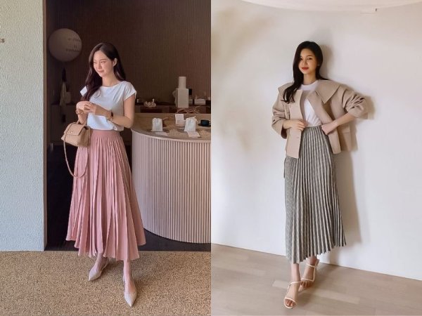 5+ cách phối đồ với chân váy xếp ly dài mùa hè năng động