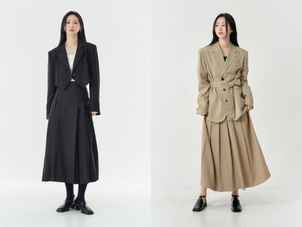 Sang trọng hơn với set áo blazer (Nguồn: Mint Tang) Mua NgayPhong cách ấm áp và thanh lịch với áo măng tô và chân váy xếp ly dài