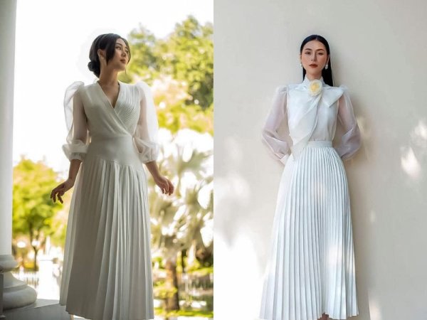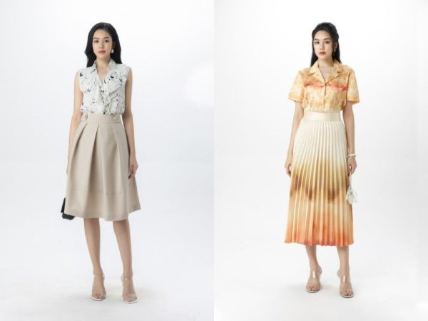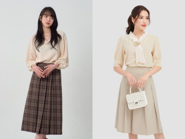 Kết hợp áo blouse với chân váy xếp ly sẽ tạo nên một trang phục thanh lịch và phù hợp cho nhiều dịp khác nhau. Bạn có thể chọn áo blouse có kiểu dáng rộng rãi để tạo cảm giác nhẹ nhàng và nữ tính. Với áo blouse có chi tiết cổ áo, nút cài, hoặc ren sẽ giúp tăng thêm sự quyến rũ và phong cách cho bộ trang phục.