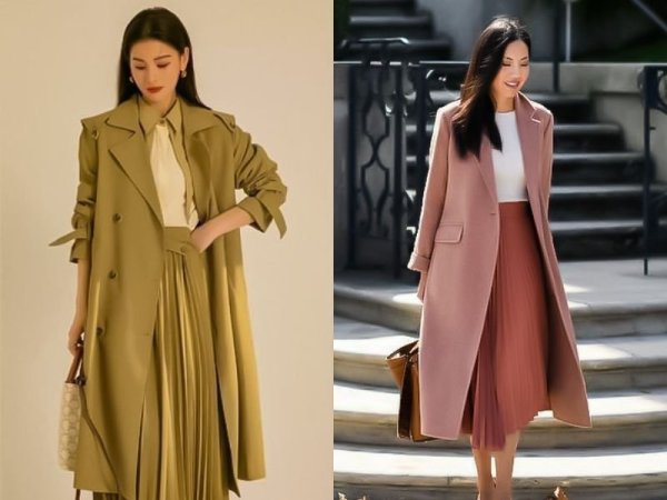 Khi phối đồ với chân váy xếp ly dài, áo măng tô có thể tạo nên một trang phục tinh tế và che khuyết điểm khá tốt cho các nàng mũm mĩm. Kết hợp áo măng tô với một chiếc áo sơ mi để tạo nên vẻ lịch thiệp hoặc áo thun mỏng để có sự trẻ trung và năng động.