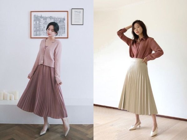 Chân váy xếp ly dài rất dễ dàng kết hợp với giày cao gót để tạo nên vẻ ngoài thanh lịch và quyến rũ. Giày cao gót cũng các nàng ăn gian chiều cao và khiến cho dáng người thanh mảnh hơn. Bạn nên chọn giày cao gót màu nude hoặc trắng để tạo sự nhẹ nhàng và tôn dáng tốt nhất.