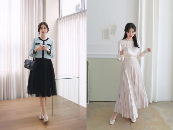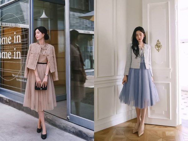 Sang trọng và điệu đà khi mix với áo khoác dạ (Nguồn: Milkcocoa.kr) Mua NgayPhong cách lịch sự, công sở với áo blazer và chân váy xếp ly dài