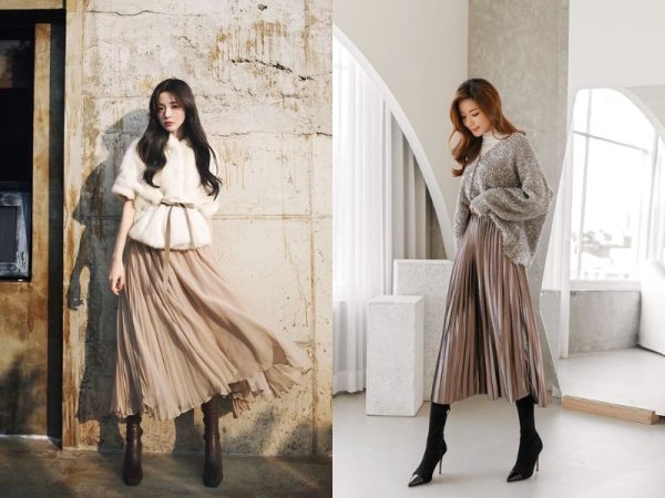 Gợi ý 5+ cách phối đồ với chân váy xếp ly dài mùa đông