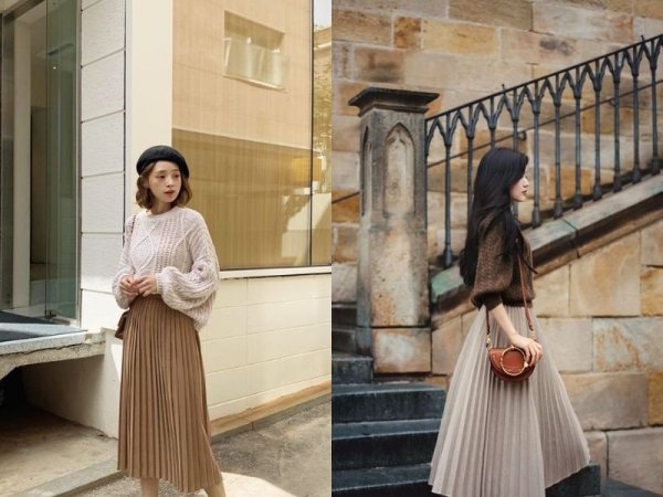 Sự kết hợp giữa chân váy xếp ly dài màu nâu và áo len dáng rộng tạo ra một vẻ ngoài ấm áp cho những ngày vào đông. Bạn có thể lựa chọn áo len có màu sắc đặc trưng của mùa đông như xám, nâu hoặc xanh navy để tăng thêm sự hài hòa cho chân váy. Ngoài ra, bạn cũng có thể mix thêm boots cao cổ và một số phụ kiện như túi xách hoặc kính mắt. Cách phối đồ này sẽ giúp bạn trông trang nhã và thoải mái hơn trong những ngày se lạnh.