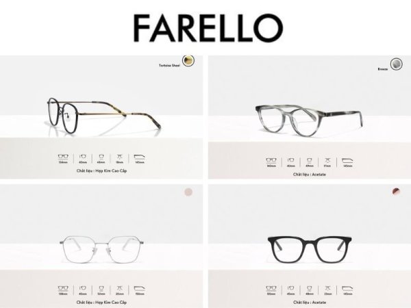Farello vốn là thương hiệu mắt kính nổi tiếng với các bạn trẻ hiện nay. Với những mẫu kính thời trang, phong phú về chất liệu và phù hợp với hầu hết các kiểu dáng khuôn mặt. Các gọng kính của Farello luôn được ứng dụng Titanium giúp gọng kính có sự vượt trội về độ bền dẻo cao và khả năng chống chịu tác động của lực va đập tốt.