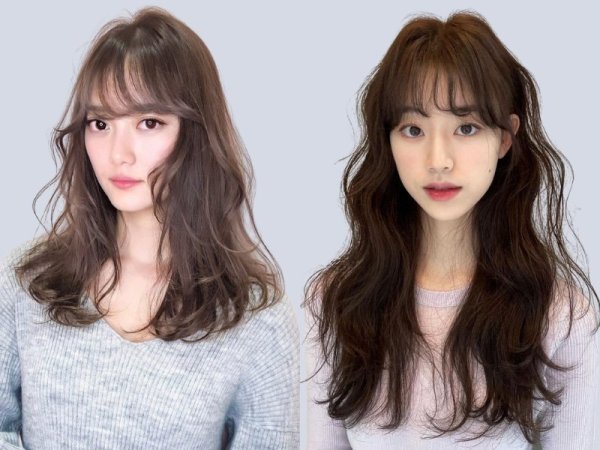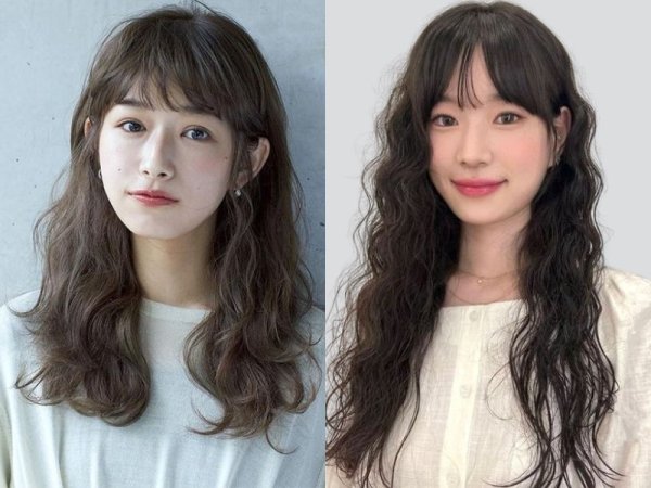 Tóc mì tôm kết hợp mái thưa là kiểu tóc không quá kén gương mặt. Phần mái thưa sẽ giúp che đi khuyết điểm, khiến khuôn mặt trở nên thon gọn. Hơn nữa, sự kết hợp ăn ý giữa tóc xoăn mì và mái thưa sẽ giúp kiểu tóc trông nhẹ nhàng và hiền hòa. Nhờ vậy, bạn có thể phối với nhiều phong cách thời trang ấn tượng.