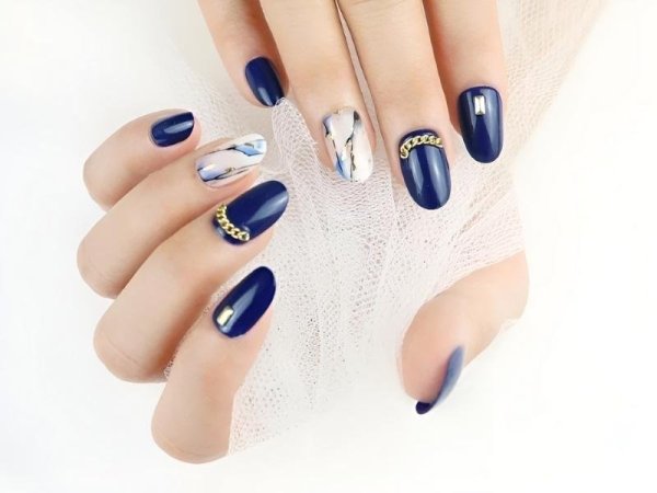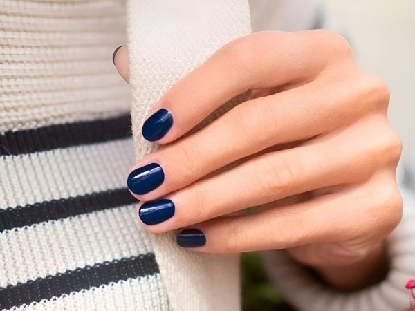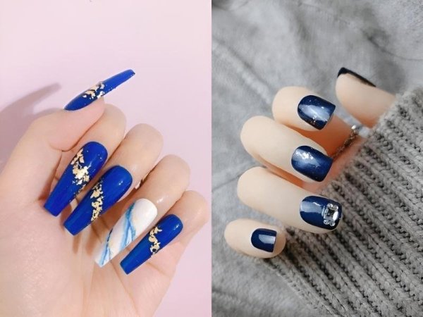 Xanh navy hoặc xanh coban là màu nail đẹp, khơi gợi cảm giác sâu thẳm, huyền bí. Màu xanh navy giúp da tay trở nên trắng sáng cũng như tôn da ngăm hiệu quả, giúp đôi tay trở nên đều màu và thu hút hơn. Ngoài sơn màu xanh trơn, các bạn có thể thử ánh nhũ, đính đá, vẽ hoạt tiết hoặc sử dụng phương pháp dip dye để cso một màu sơn móng tay đẹp trên nền nail xanh dương.