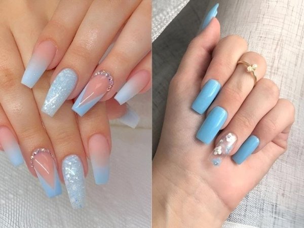Vì là tone màu nhạt nên màu nail xanh dương pastel thích hợp với các bạn có làn da tay trắng sáng. Ngoài ra, màu xanh dương pastel còn không kén dáng móng. Nếu bạn muốn ngón tay mảnh khảnh, thon dài hơn, có thể chọn dáng móng dài, nhọn kết hợp xanh pastel.