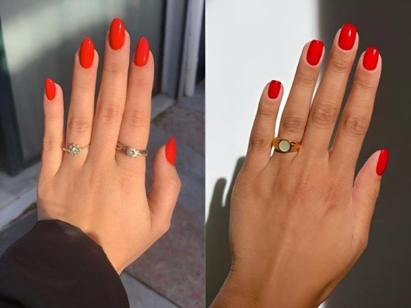 Màu đỏ tươi không kén dáng móng và tone da (Nguồn: reddit.com) Sơn màu đỏ tươi giúp da bạn sáng hơn (Nguồn: @MyMabelNail – Pinterest, @abcd.efghiklm) Kết hợp trang sức bạch kim lấp lánh giúp bộ nail trở nên nổi bật hơn (Nguồn: @djrobinson57, @MiShuhbeelarmee – Pinterest)Nail màu đỏ đất